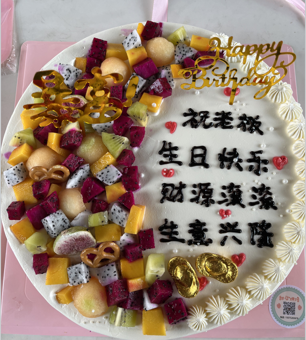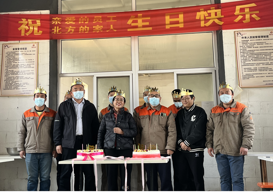 公司食堂準(zhǔn)備了豐盛可口的飯菜,公司準(zhǔn)備了生日蛋糕,董事長發(fā)表講話,并為過生日的同志送上生日祝福,公司員工聚在一起唱生日歌,分享生日蛋糕。大家都覺得十分幸福,因為我們是相親相愛一家人。