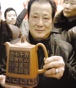【容量】370cc 【作者】鄭求標 - 高級工藝美術師 作品高聳,精氣神兼具,整器透露出一股沁人心脾的氣息,壺身刻繪“圣泉”與山水圖,刀法老練精湛! 底槽青· 泥料簡介![]() 簡介:底槽青,產于江蘇宜興黃龍山系,紫泥原礦大致可分:頭槽、二槽青、底槽青等三類,本名泥產于紫泥最底層,質量之佳,為歷代陶人推崇之首,亦為數百年來經典名器,及已故顧景舟大師最鍾愛之名泥;此泥礦名稱,因宜興產地方言沿用已久,為恐溷淆,故用其音直譯文字,以“底槽青”名之。最早產于黃龍山四號井,后來是黃龍山五號井和臺西礦。由于產于紫砂最底層,質地特純,泥質細膩、成色穩重,呈棕色,在近代制壺名家廣泛使用。 猜您喜歡