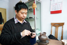 【容量】370cc 【作者】莊玉林 - 研究員級高級工藝美術師 壺式為莊玉林專利原創,壺體六方,塊面之間線條挺中有圓,壺肩上收至壺口減小,呈曲線運動;下放稍外撇的弧線收于壺底;壺體陶刻書法裝飾,整壺形似鐘,飲茶提神,敲鐘聲入耳亦破睡,銘文切壺、壺名切意,可品讀可瀹茶! 六方 · 壺型簡介![]() 六方是根據幾何造型創作而來的紫砂器型,其形體明快挺秀,具有陽剛之氣,棱角清晰,將方器的幾何之美塑造得十分的漂亮,六方亦是經典方器款型,每款六方造型都達到了方器“線條流暢,輪廓分明,平穩莊重”的規則要求。從早期的六方大彬壺到歷史悠久的僧帽壺,再到經典器型的雪華壺,無不一展示了方器“以直線、橫線為主,曲線、細線為輔,器型的中軸線、平衡線要正確、勻挺、富于變化”的器型特點。六方器型依據幾何造型,雖然器型表面看似簡單,卻做工精細,需要有深厚的制作技術方能將方器的精髓把握住,六方便是將方器的精髓之處把握得恰如其分。 清水泥· 泥料簡介![]() 簡介:本泥因視之古樸,經長期使用后老味濃厚,又乃古代陶人最喜使用,為流傳較多傳器之泥料,故以清水泥名之;乃作與賞二者最推崇之泥料。泥性:干濕易掌握,穩定性高,黏性合理,成型較易。陳泥須回煉,否則易生黑邊、花泥,提煉時須留意氧化鐵及石灰質之剔除。清水泥為純種紫泥礦,宜興陶者呼之“普泥”,為較常見之泥料;良者稀而貴,劣者多而廉;玩家習稱“紅紫泥”,乃作與賞二者最推崇之泥料。 猜您喜歡