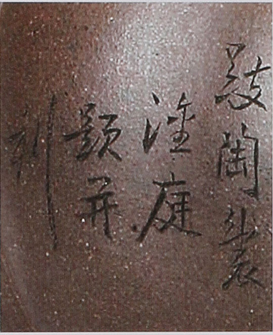 任淦庭介紹任淦庭(1889—1968),字缶碩,名干庭,號石溪、聾人、大聾、漱石、左腕道人、左民,當代宜興紫砂陶刻名師。 1889年,生于江蘇宜興。 1903年(15歲),從宜興名陶刻畫家盧蘭芳(常為上海劇團畫布景)學藝,滿師后在吳德盛陶器公司雕刻作畫謀生。 在公司出品的產品中,署名『企陶』或『潛陶』的刻款者,多為任淦庭所制。 1937年,抗日戰(zhàn)爭爆發(fā)后,陶器行業(yè)日漸蕭條,他以賣畫鬻字糊口。 1954年,參加蜀山陶業(yè)生產合作社,專心帶徒傳藝。 1956年,被江蘇省人民政府任命為技術輔導(即后來所稱的七大藝人之一)。 1957年,出席全國民間工藝美術藝人代表大會。同年11月又出席全國群英會。 1966年,文化大革命開始,紫砂行業(yè)受到打壓。 1968年,因病不聿辭世,享年80歲。 任淦庭出身書香世家,他只讀過三年私塾,因幼年喪父,故時常以樹枝作筆,席地而畫:中年喪母,命運多舛。他酷愛書畫,潛心研究紫砂雕刻技藝,并師承清代末年宜興書畫家、金石家陳懋生、陳研卿等人,特別注重寫意筆墨的線條變化。 他善于在各種紫砂茶具、花盆、鼎爐等陶坯上書畫或雕刻山水、金石索、花卉,翎毛等,無不生動雅致,可說是紫砂陶刻技藝全面的民間工藝大師。其陶刻作品,筆力遒勁,鐵畫銀鉤,刀鋒靈秀,真草隸篆,各具風格,尤以大篆和古隸見長;圖畫信手拈來,隨意刻繪,自成章法,且左右手能同時書畫雕刻,功夫獨到,特別是裝飾成對紫砂花瓶,是他獨到的絕活。作品曾被送往前蘇聯(lián)、前捷克和斯洛克等國家展出。作品『漁舟聽鶯』和『臘梅喜鵲』則被南京博物館收藏。由于他對紫砂工藝的突出貢獻,曾被評為工業(yè)特等模范。 任淦庭帶徒傳藝十分用心,其中徐秀棠大師就是他組織合作社后的第一個弟子,其他還有譚泉海、鮑志強、鮑仲梅、毛國強、沈漢生、咸仲英、邵新和、王品榮、馮希亞、朱蓉娟、陳鳳妹、張赦棠等。近八旬之齡,他還每日習字作畫,從不間斷,并根據(jù)每個藝徒的特長,分贈畫稿,供學生臨摹參考。后雖腕力不濟,但仍以鋼筆作畫,為后輩留下諸多的畫稿和陶刻用句,其孜孜不卷的精神,足堪世人銘記。 任淦庭的紫砂壺印章